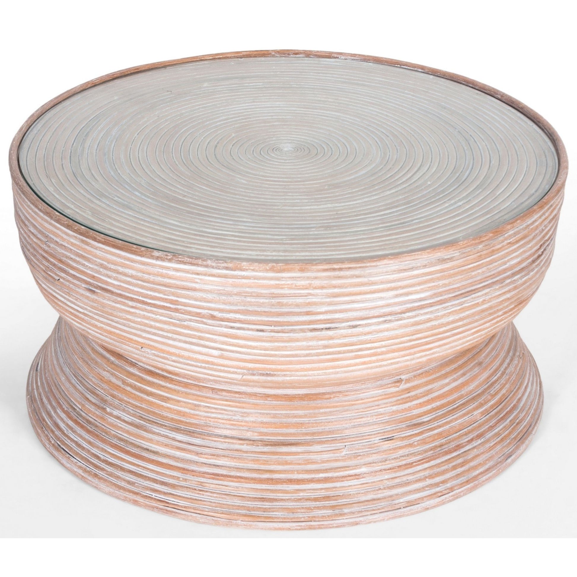 This gorgeous coffee table adds a fresh beauty to a living room. With its distinct design, round shape, whitewash colour, and glass top, the traditional style coffee table will beautify your living area. The table is designed in an exotic pattern using sustainably harvested rattan material and a metal frame. It is crafted using a unique weaving and finishing technique. Each piece is handmade from natural cane using age old traditional construction methods and so no two products are the same. Each will come with their own unique variations and look. The material ensures the table's strength, long durability, and beautiful appearance. The stunning indoor furniture will become the perfect companion for any kind of lounge or sofa, while also becoming a stopover for tea, coffee, magazines, and devices. The fully assembled coffee table comes with a one-year warranty.
