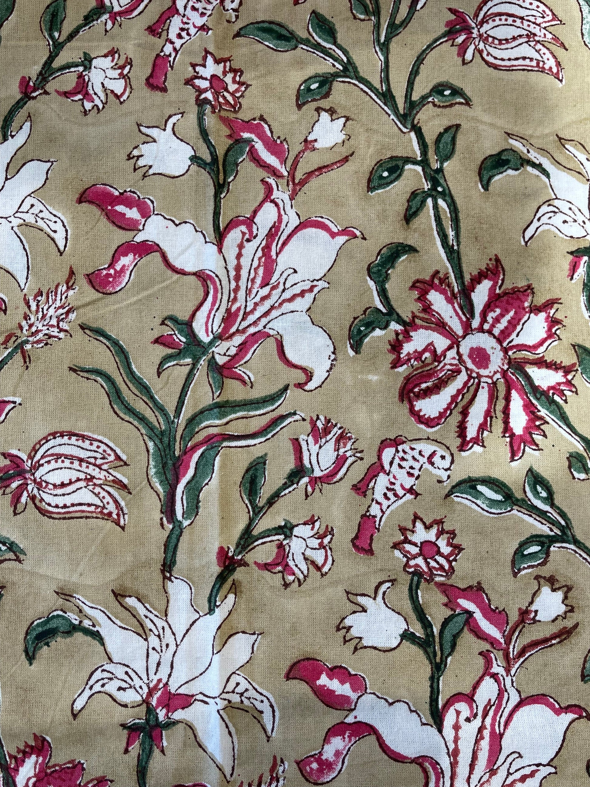 Cotton Bed sheet/Flat sheet - Earthy Floral Hand block printed Cotton Bed sheet/Flat sheet