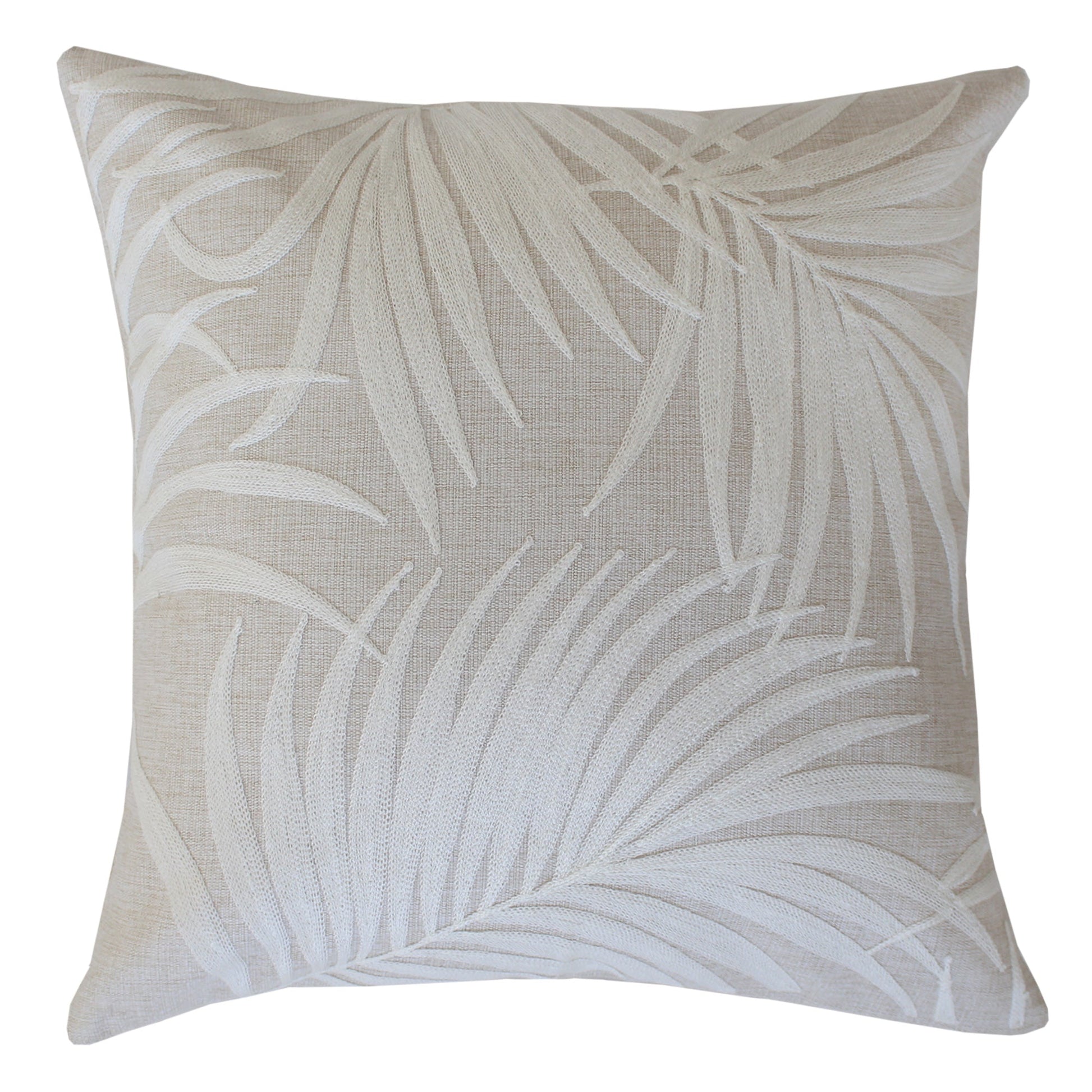 Cushion Cover-Boho Embroidery Single Sided-Palm Leaves White-50cm x 50cm