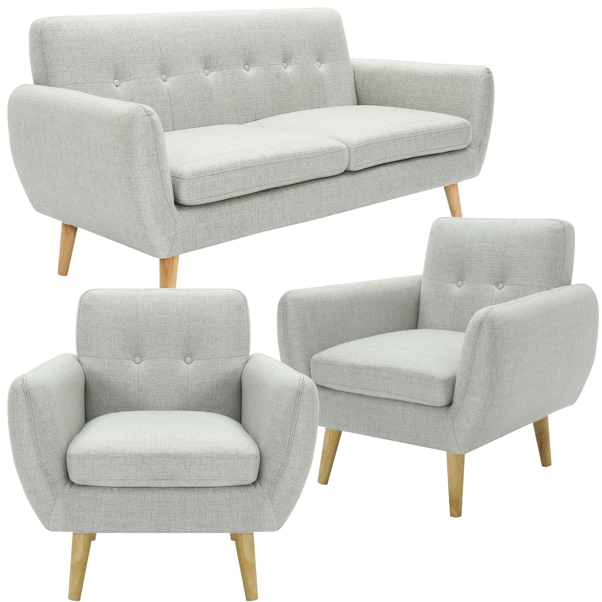 Dane 3 + 1 + 1 Seater Fabric Upholstered Sofa Armchair Lounge Couch - Light Grey