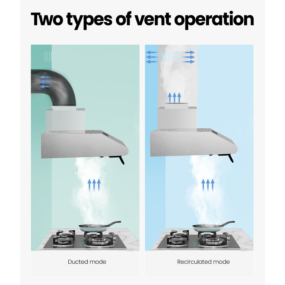 Devanti 600mm Range Hood 60cm Rangehood Kitchen Canopy LED Light Stainless Steel