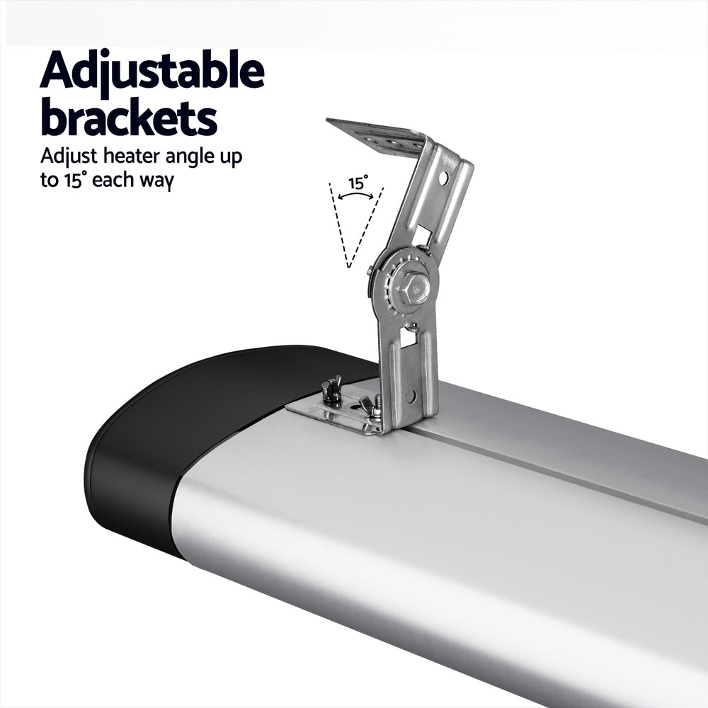 Heat your home during the cold months with the Devanti Radiant Heater. It features three heat settings and a rapid heat system that will warm up the home in no time. Get warm from anywhere using the included remote control and adjustable auto-off. The heater doesn't emit any odours, fumes or carbon dioxide, and reflective heating technology allows to heater to run more efficiently. It has an IP65 rating that makes it perfect for outdoor and indoor use, and the heater can be wall or ceiling-mounted to suit your space requirements. The heater also works silently and is virtually maintenance-free, while adjustable brackets allow you to focus the heat where you need it. Stay warm and cosy this winter with a Devanti Radiant Heater.