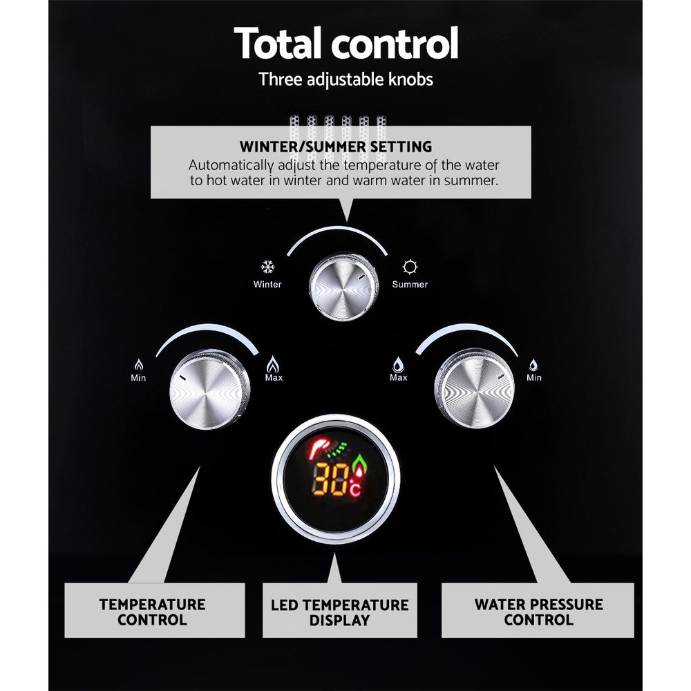 Devanti Portable Gas Water Heater 8L/Min LPG System Black