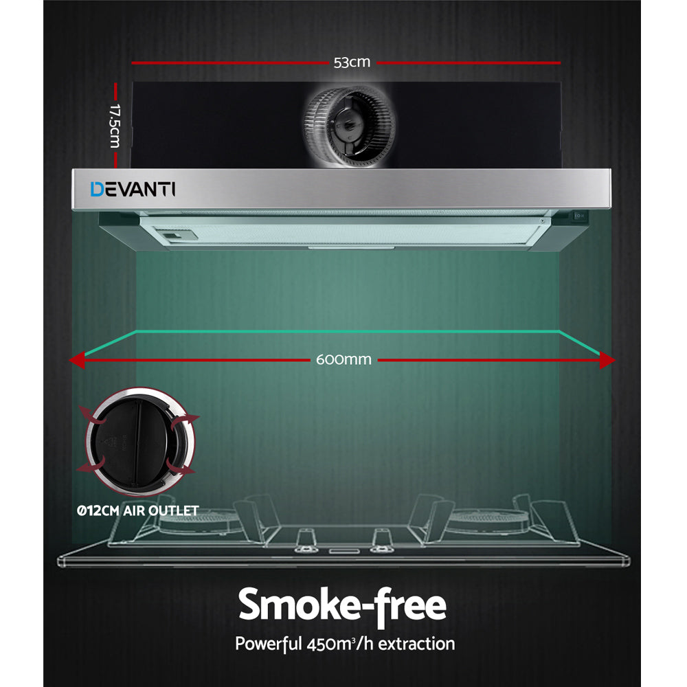 Devanti Rangehood Range Hood Stainless Steel Slide Out Kitchen Canopy 60cm 600mm Black