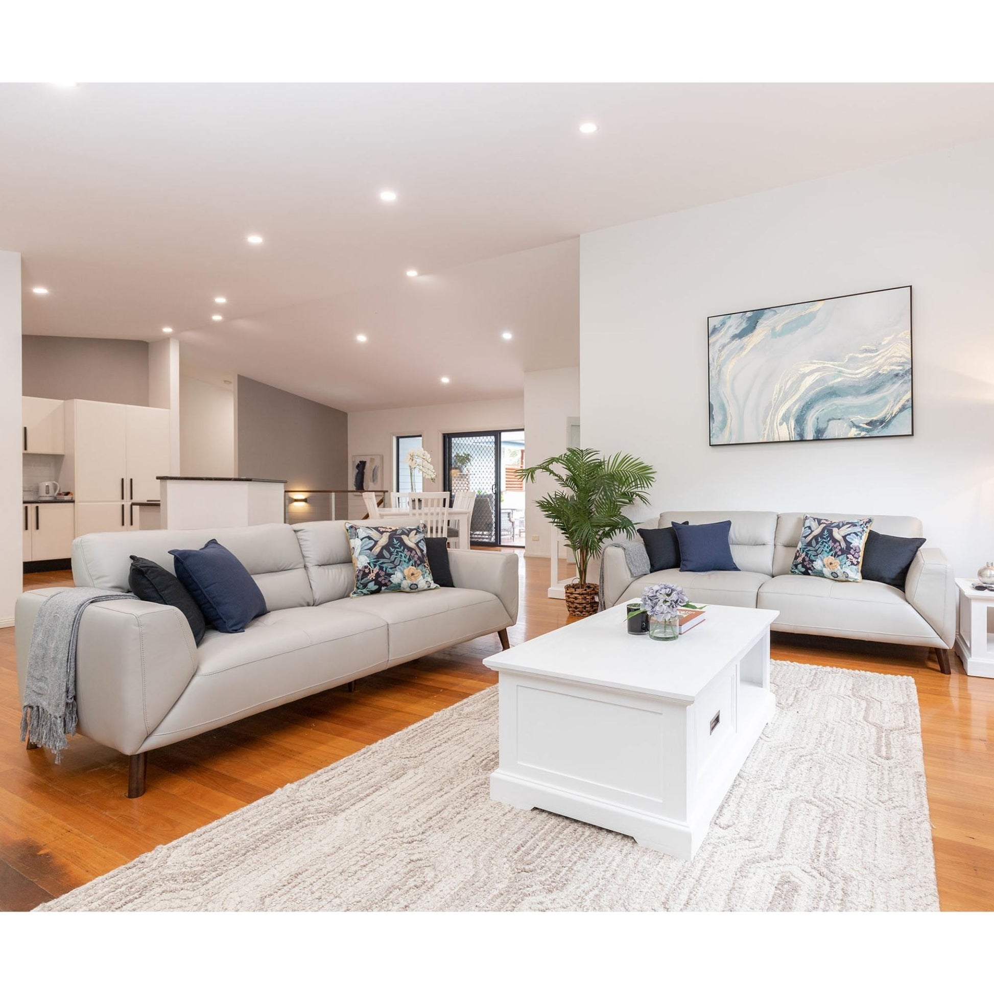 A luxurious 2-seater lounge that displays one of the best furniture arts. Place this beautiful sofa, designed in a modern style, in your living area and see it become the most lovable corner of the house. The adorable lounge features quilted seat details with super comfy lumbar support. The S-springs, webbing, and dense foam make the seats worth it. You can feel it when you sit or stretch your body on the lounge. The lounge has thick cushioning for added comfort, and it is upholstered in a 100% leather cover in tangerine colour. The colour blends easily with any home interior theme or living space design. The stunning sofa also features strong, timber legs. The structural frame of the lounge is made of sustainably harvested solid timber and plywood, giving it solid internal strength and making it durable. The frame has a five-year warranty; the foam and springs have a three-year warranty; the leather and stitching have a one-year warranty; and all other parts have a one-year warranty.