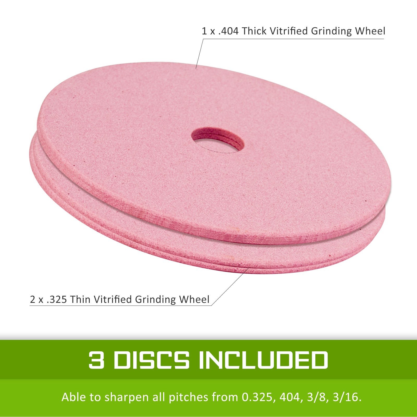 - 1x Thick Vitrified Grinding Wheel, .404 Pitch Grinding Wheel - 22.3mm Arbor