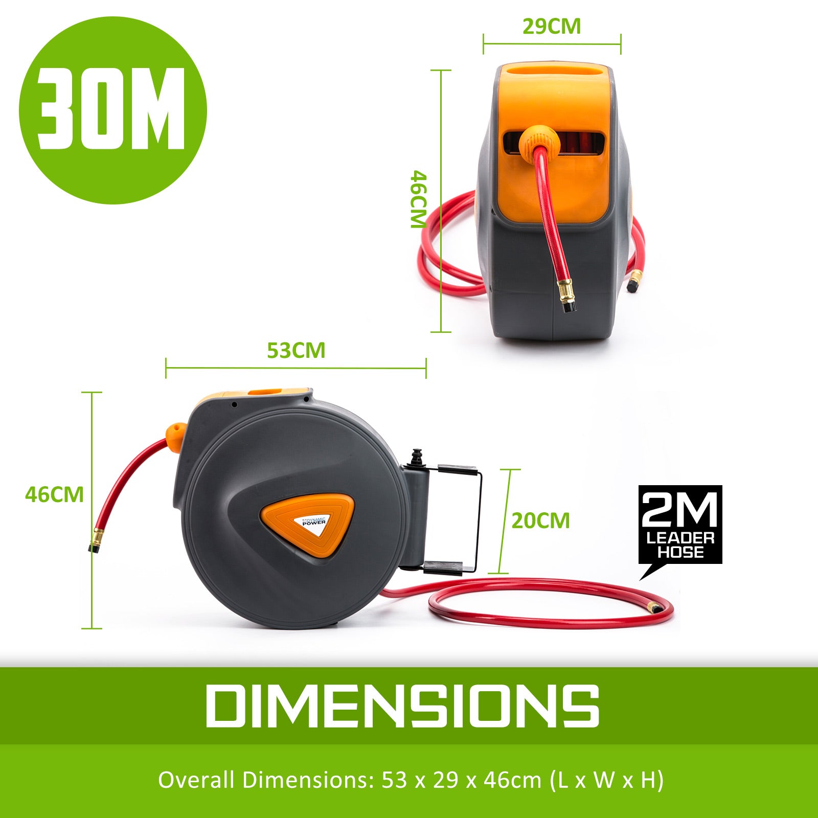 Dynamic Power Air Hose Retractable Reel Auto Rewind Heavy Duty Wall Mounted 30m
