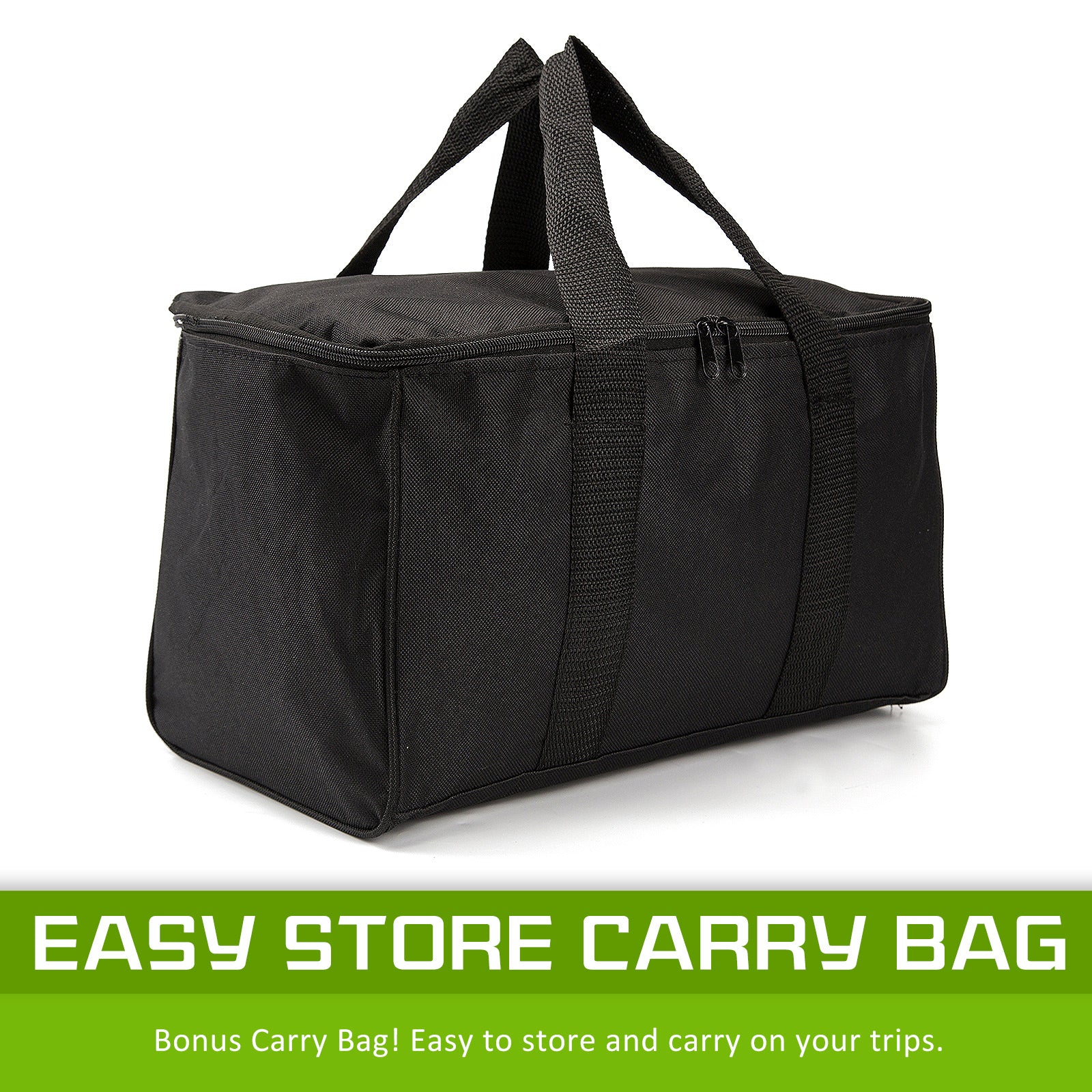The compressor main body is made of premium quality heavy duty parts. It is equipped with premium stainless steel 50mm valved cylinders, lifetime bearing mounted gearless direct drive copper motor, fused overload protection, dual foam air filters, heavy duty alligator clamps and an extra safe rubber sealed power cable in good length. A bonus carry/storage case comes with the compressor so you can keep all the holes and cables tidy and take the compressor wherever you want in your vehicle!