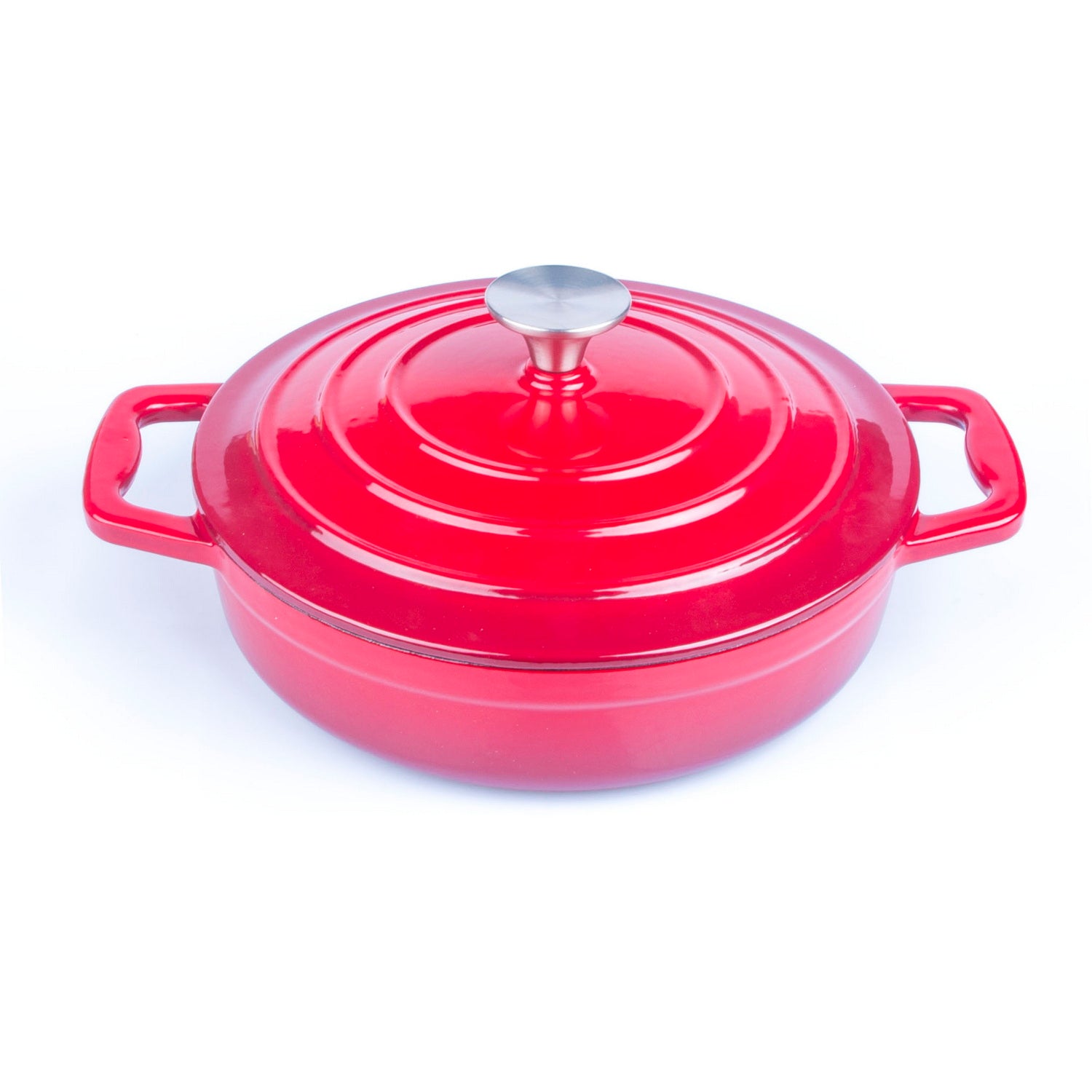 Enameled Cast Iron Cookware Casserole Braiser Pan, Round CastIron Skillet lid for Oven Red