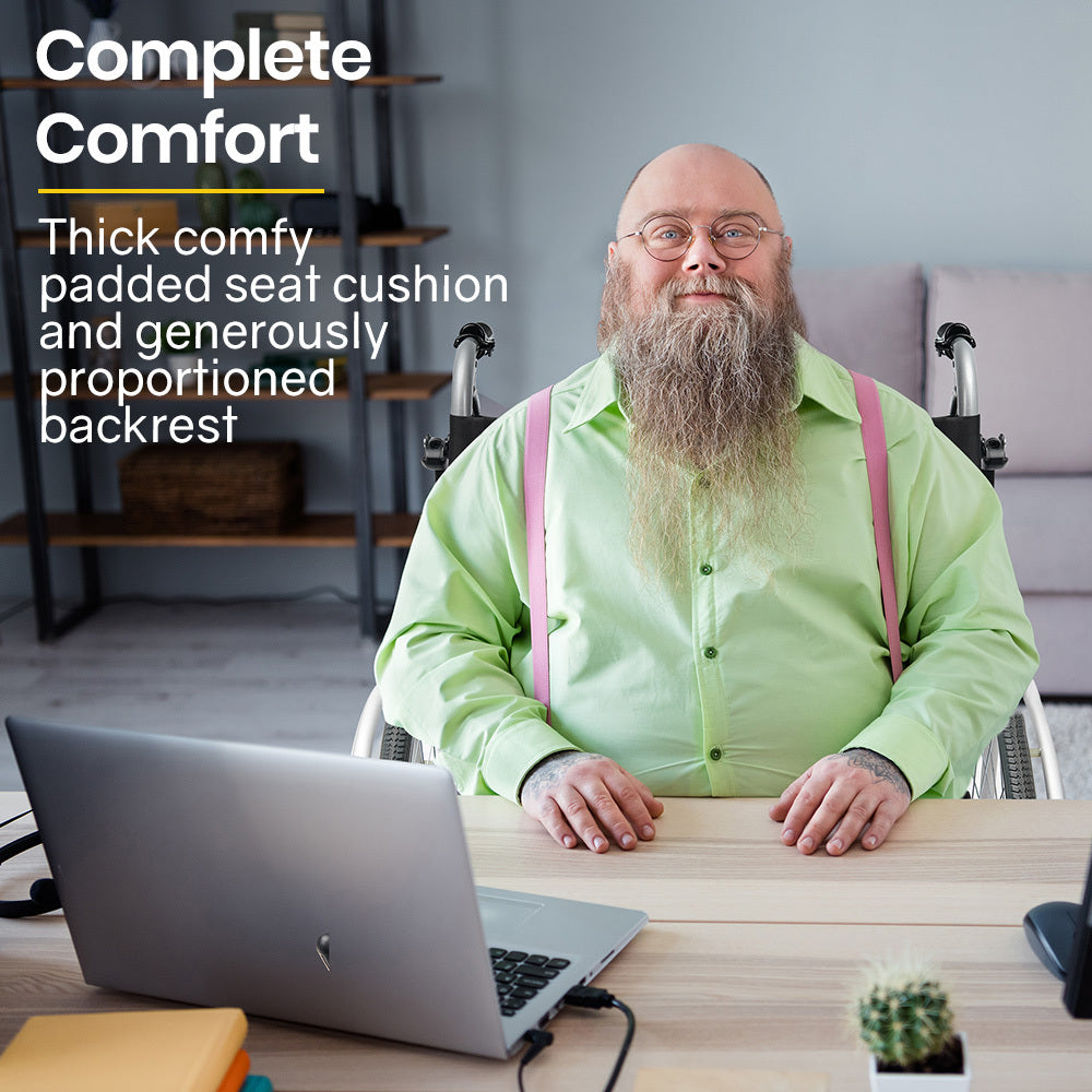 The Equipmed Comfortline series is a premium extra-wide wheelchair. With a powder-coated aluminium design weight is kept to a minimum, yet it is strong enough to accommodate passengers of up to 150kg.