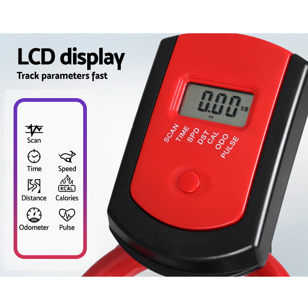 Tired of having to cancel your workout due to the weather, gym closures or other commitments? Now you�ll be able to exercise come rain or shine with an Everfit Spin Exercise Bike. Our gym-quality equipment fits perfectly in your home, helping you achieve your fitness goals one day at a time. With an industrial-strength powder-coated steel frame, heavy-duty stainless-steel flywheel and silent belt drive system, the bike offers a silent and smooth workout. Adjust the thick padded saddle seat, handlebars, and resistance levels to tailor your ideal workout. The onboard computer with an LCD monitor and built-in pulse sensor will track five fitness parameters on one display. Non-slip pedals with protective straps keep your feet firmly in place, while built-in wheels make the bike easy to move. Best of all, a in-built phone holder allows you to watch your favourite movies, shows or workout mixes as you exercise. So what are you waiting for? Start your very own home gym today with an Everfit Spin Exercise Bike.