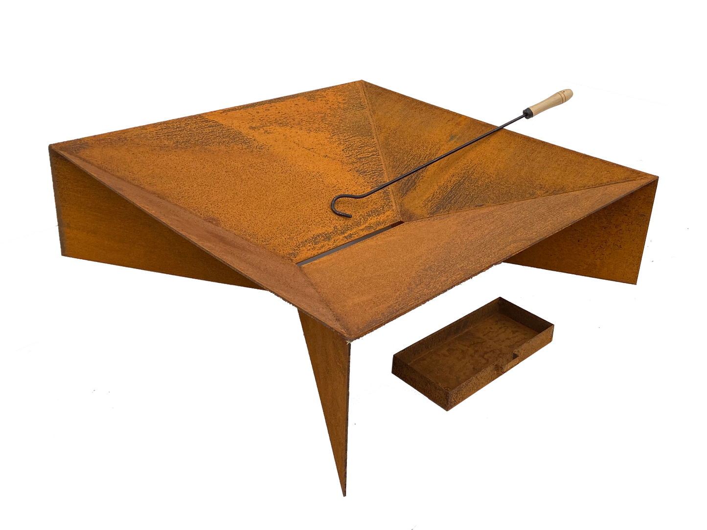 Square fire pit 70*70*20cm, 20kg plus ash tray in Rust