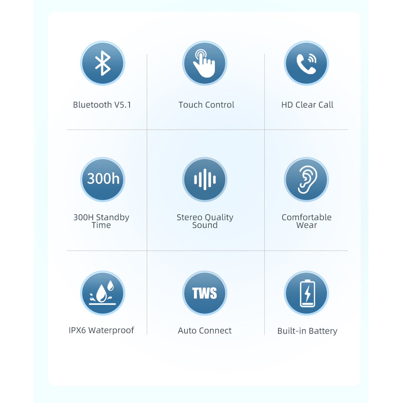 Each in-ear connects immediately and independently, so you can take calls with either one and assign unique functions to left and right. With 8 hours of playtime, 300 hours standby time and IPX6 waterproof rating, they're the ultimate true wireless in-ear touch control headphones.