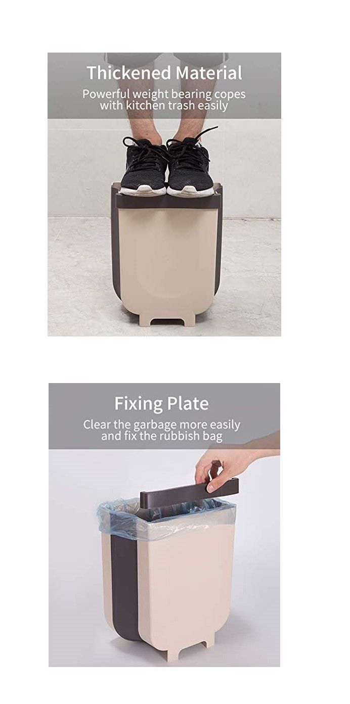 - Foldable design: Saves valuable space in your kitchen, foldable storage when you are not using it, easy to carry, suitable for outdoor use. It can be easily hanged over cabinet door for kitchen cupboard/office lockers/bedroom drawers. No need to bend over to drop something in. It can be moved at will with the over-the-door hook.