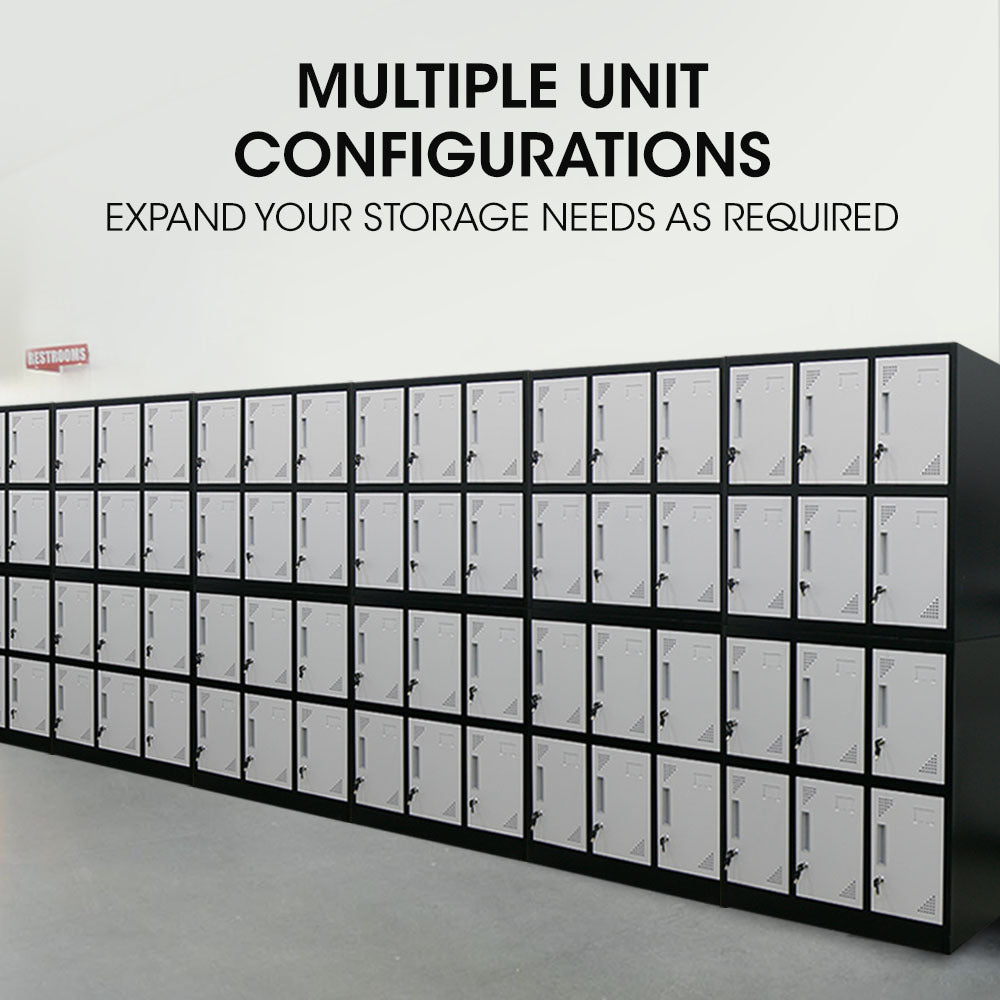 Built tough, the FORTIA™ 12 Door Locker has been constructed from solid cold rolled steel. Powder-coated in two-tone black and grey, this 12 Door Locker system combines sleek design with quality construction.