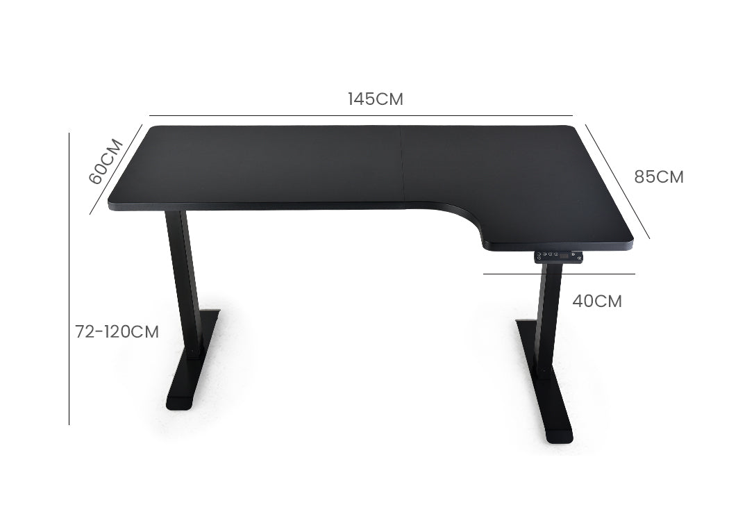 Fortia L Shaped Sit To Stand Up Corner Standing Desk, 72-120cm, Dual Motor, Adjustable Height Electric, 80kg Load, Right-Hand Sided, Black