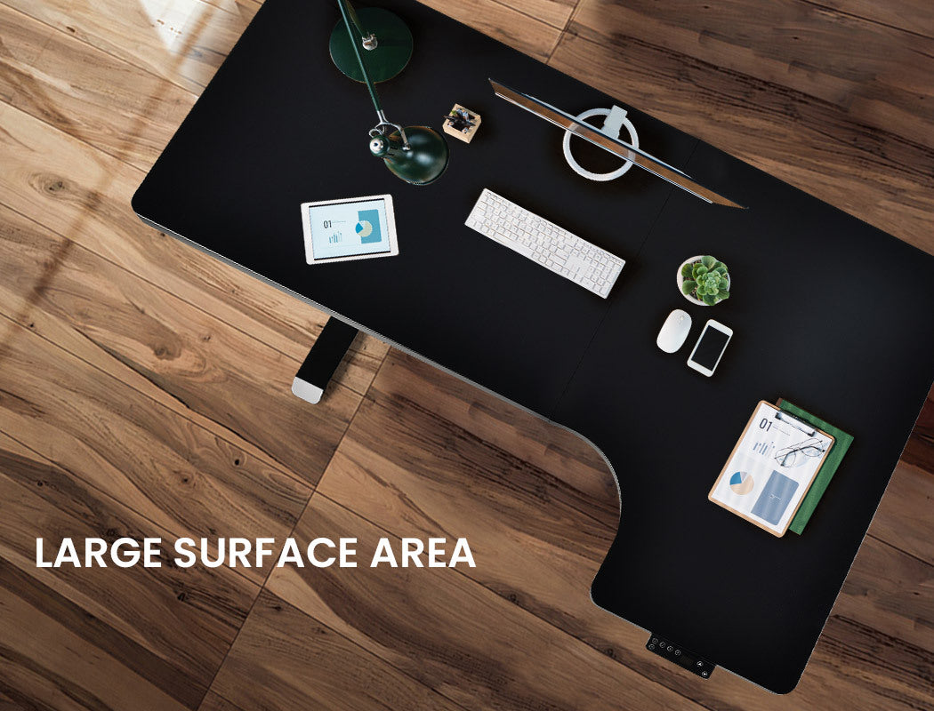 The desktop comes pre-drilled for easy assembly and is accompanied by a quality manual. Height adjustable non-marking feet ensure a stable placement in any home office or corporate environment. Give your workspace a lift with the FORTIA L-Shaped Standing Desk.