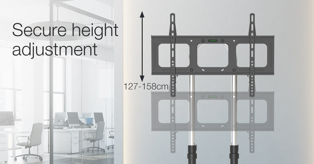The FORTIA Commercial Grade Rolling TV Stand is incredibly easy to assemble, perfectly fitting TV screens between 37"-70" with varying adjustable VESA compatible universal fittings. The stand height can be adjusted between 127 to 158cm in order to provide a comfortable line of sight.