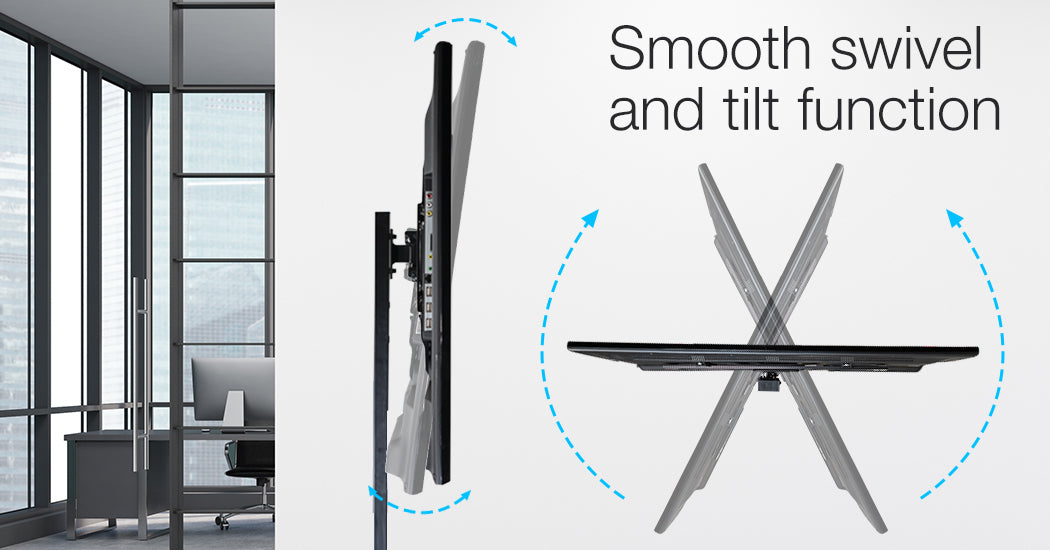 The FORTIA Stationary TV Stand is easy to assemble and accommodates screens sized between 32"-70", with adjustable VESA compatible universal fitting. Its smooth swivel and tilt functions allow you to adjust the angles for the perfect ergonomic viewing position. The height of the stand can also be adjusted between 126 to 142cm in order to provide the ideal line of sight .