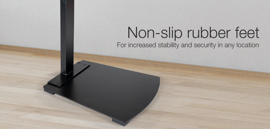 The FORTIA Stationary TV Stand is designed with convenience and durability in mind, and is ideal for use in a variety of settings. Whether you need a versatile stand for your office, school, small business, trade show, conference presentation, or home, it fits seamlessly.