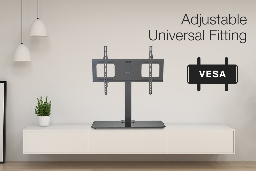 The FORTIA Desktop TV Stand is incredibly easy to assemble, perfectly fitting TV screens 37”- 55” thanks to universal VESA fitment. The height can be adjusted between 60 to 70cm to provide for a comfortable line of sight so that you always have a convenient and ergonomic viewing experience.