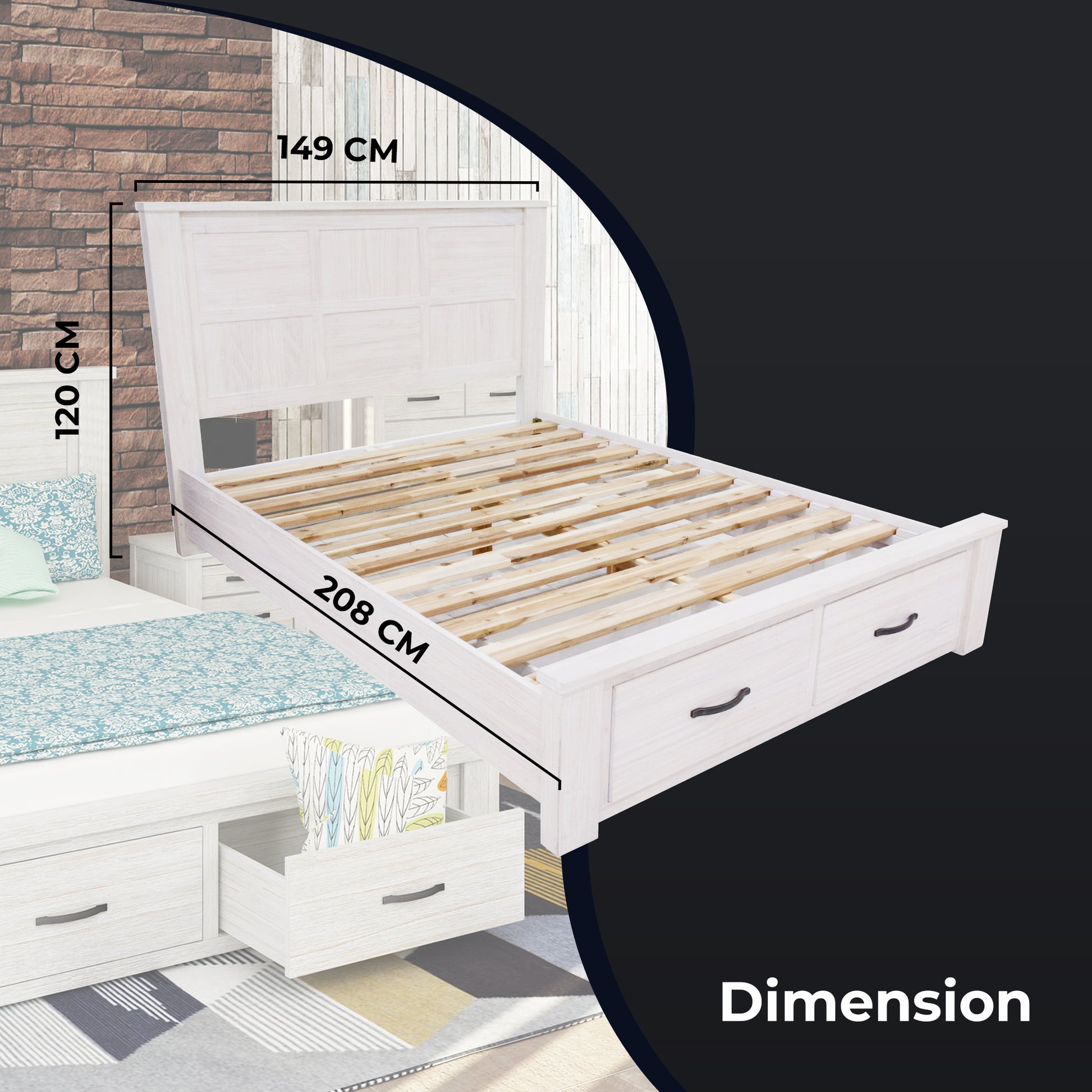 - Double bed with 2 large storage drawers