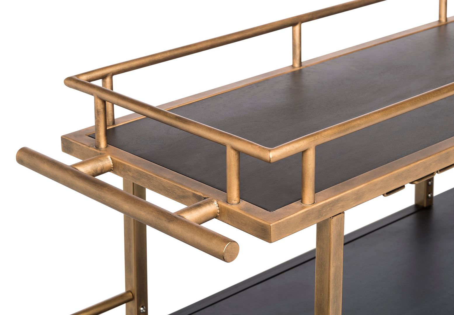 French Brass and Black Drinks Trolley Bar Cart with Bottle Rack Storage