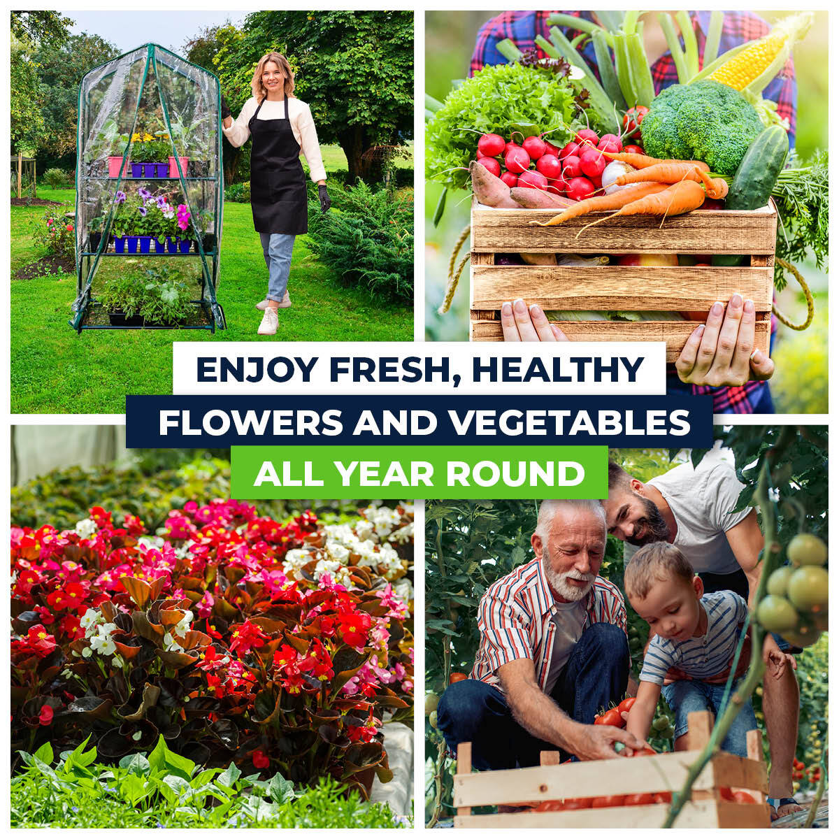 Garden Greens® This greenhouse shed is ideal for protecting precious plants and seedlings from various weather conditions and unwanted pests and insects. Providing your plants with a more stable temperature, this high quality and solid structure will help you grow fresh, healthy plants all year round.