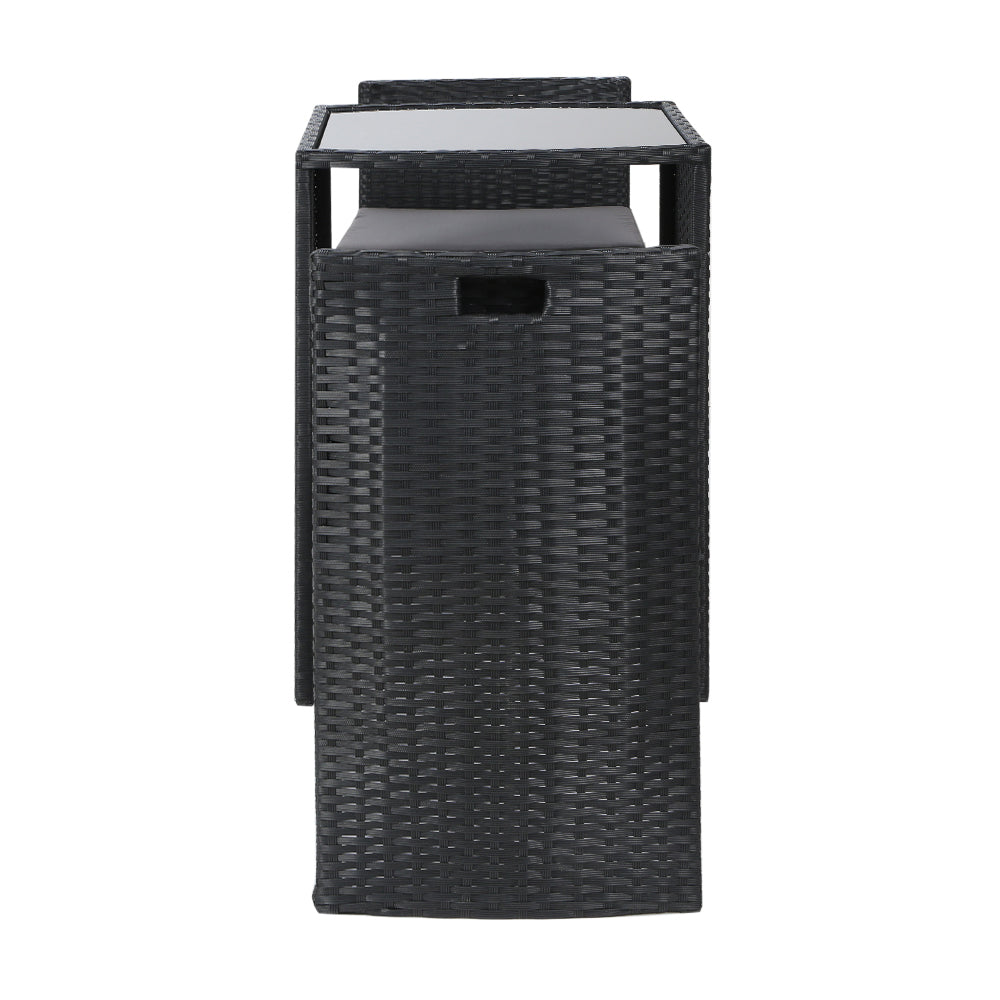 Looking to create a chic and gorgeous outdoor setting? The Gardeon 3-piece handwoven wicker outdoor dining set is a must purchase. It will liven up your outdoor space and help you achieve an elegant outdoor dining setting where you can enjoy day and night and summer and winter. The set comprises of two dining chairs and a matching dining table. Its beautiful and versatile design makes it perfect for indoor and outdoor use. This outdoor set features a lovely wicker weave for a touch of tropical charm, and the PE wicker with heavy-duty steel frame is suitable for all-season use. The thick tempered glass tabletop boasting solid structure and classy design ensures strength, durability, and timeless look, and the chairs has curved design with thick foam and built-in handles for comfort and convenience. This wicker outdoor set will withstand the test of time. Furthermore, the chairs come with removable cushions that can be removed to suit different seasons, and the water-resistant polyester covers are easy to keep clean. Our 3-piece outdoor dining set has an integrated design that can be pulled together for easy storage. Now create a praise-worthy spot with just a little creativity that will wow your guests using our Gardeon wicker outdoor dining set.
