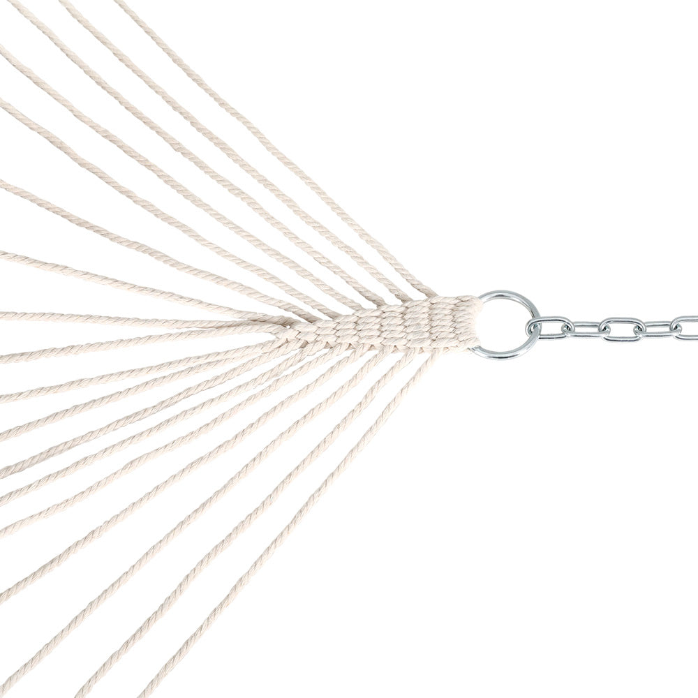 Enjoy a breezy, beachy hammock feel from the comfort of your home. Our Gardeon hanging hammock bed is crafted with high-quality materials and expert craftsmanship that make it a perfect addition to your outdoor or indoor space. It will provide you with unparalleled comfort and relaxation. The hanging hammock bed is made with quality polyester fabric. It offers exceptional durability and resistance to wear and tear. Additionally, the fabric is soft to touch and breathable, ensuring utmost comfort even during the warmer season. Our hanging hammock bed also includes solid metal spreader bars that add stability and style. They also provide reliable support and help maintain the hammock's shape, allowing you to lounge comfortably without worrying about sagging or discomfort. For added strength and stability, our hammock bed features superior-strength cotton ropes that are meticulously woven to provide maximum support. They distribute weight evenly and will hold you safely while you unwind. You can style our Gardeon hanging canvas hammock bed and chair anywhere - create a relaxing space in your garden, enjoy a lazy afternoon on your patio, or create a nice comfy spot indoors where you can chill with a book or just listen to songs. Shop it today!