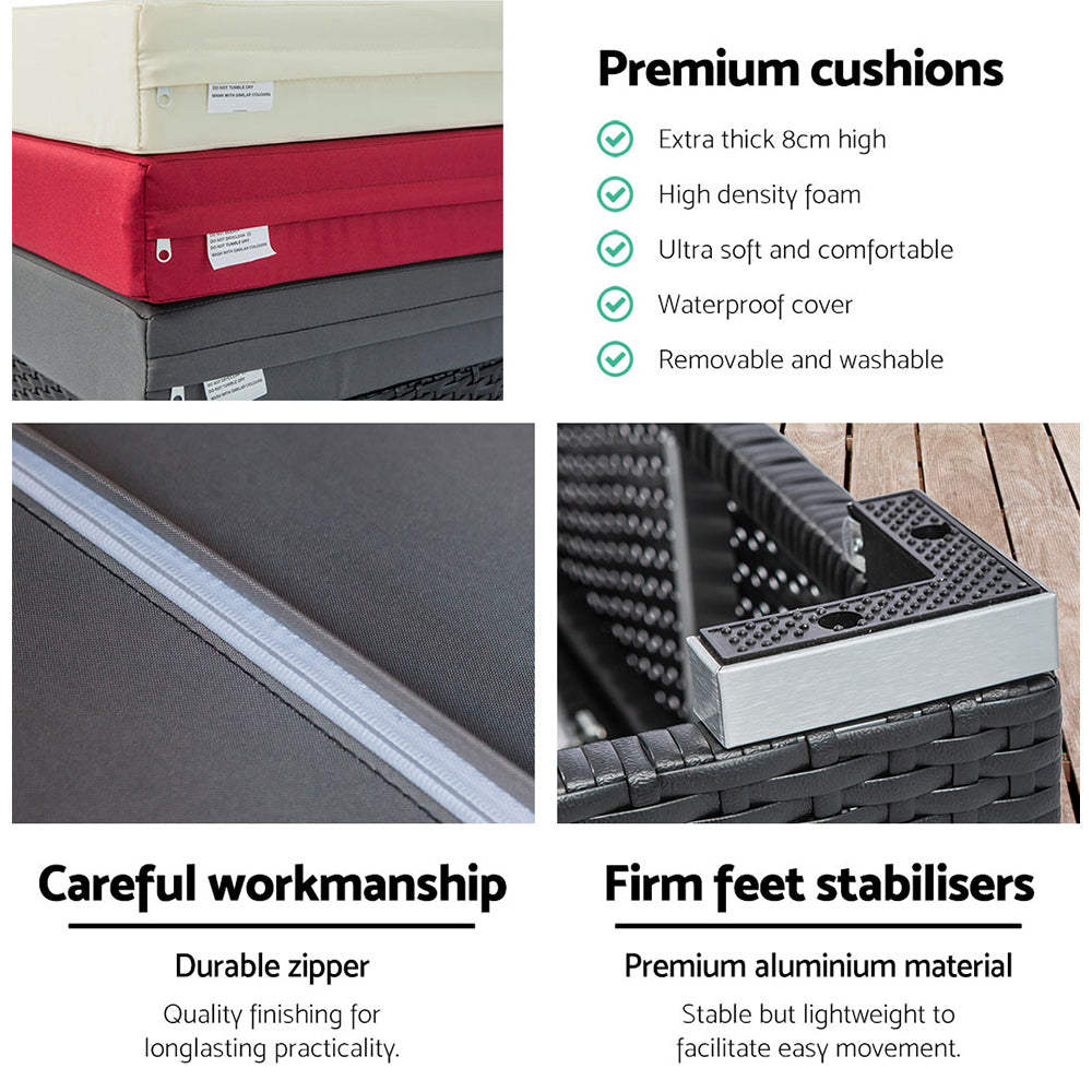 Gardeon Outdoor Sun Lounge Wicker Lounger Setting Day Bed Chair Pool Furniture Rattan Sofa Cushion Garden Patio Grey Black