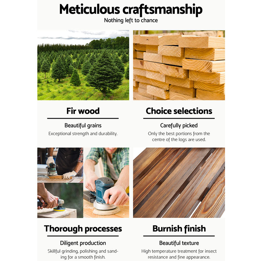 From its period styling to its rustic imported Canadian Fir wood design, the Wagon Wheels Bench is solidly built to seat two persons comfortably. The attention to detail is excellent with finely crafted wagon-wheel armrests, a smooth and supportive backrest and exceptional strength and beautiful grains from the Firwood finish. In fact, the Bench can take on a massive weight of up to 220kg. Better still, the Firwood is weather-resistant, UV-resistant and blessed with a natural resistance to rot and pests. Everything you want in a durable and long-lasting garden bench under the great Australian sun and rain.