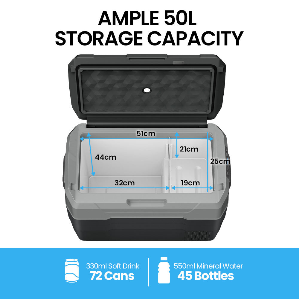 This Gecko Portable Fridge/Freezer is a versatile and high-performance refrigeration solution designed for use in a range of settings, including 4WDs, cars, camper trailers, boats, and caravans. With its 50L storage capacity, this camping fridge provides ample space for your food and drinks, making it perfect for extended trips or outdoor adventures.