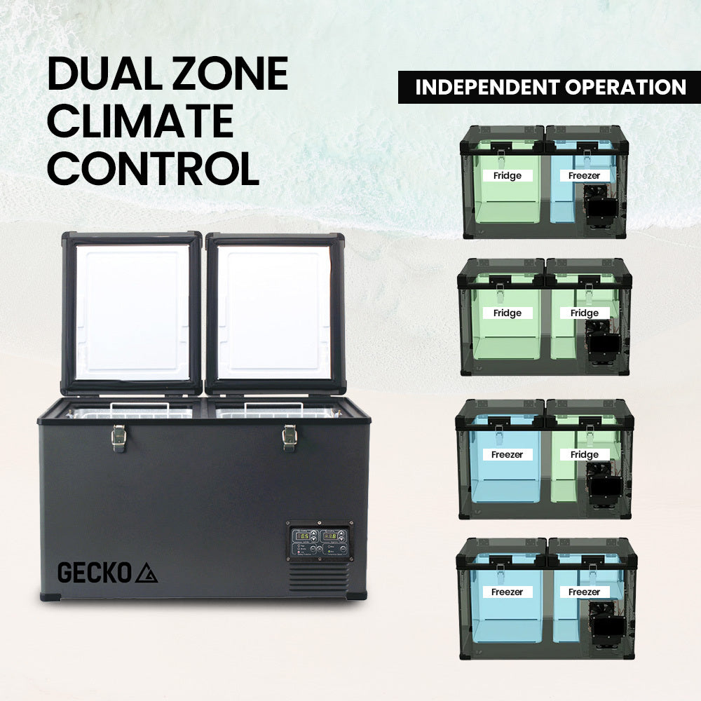 GECKO 75L Dual Zone Portable Fridge / Freezer, SECOP Compressor, for Camping, Car, Caravan