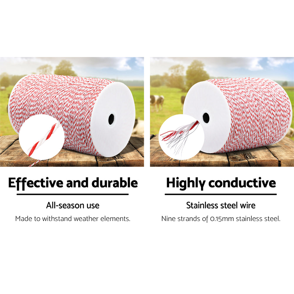 Giantz 2000M Polywire Roll Electric Fence Energiser Stainless Steel Poly Wire
