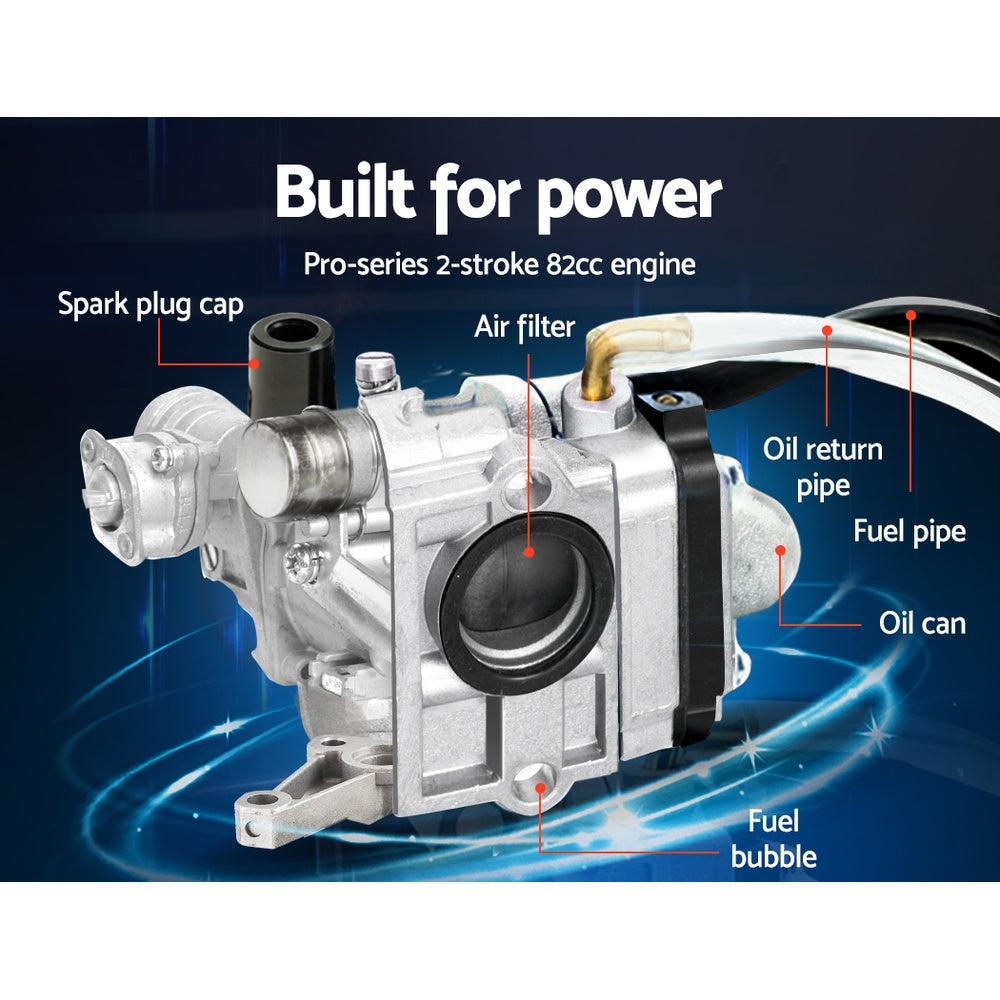 Get the earth moving quick and easy with the GIANTZ Hand-held Tiller. Featuring a 72cc 10,000rpm 2-stroke petrol motor, the tiller churns out soil deep and wide with its 16 teeth of hardened steel tines. The four blades allows you to till an extra-wide swath of 300mm and up to 150mm in depth in only one third of the time compared to four-blade models. In other words, you only need one pass with the tiller to pulverise the soil and get the right seedbed for your favourite crops. Operating the tiller is just as easy with its pull-start improved engine, steady handle and quick-release hand throttle control and all-terrain rubber tyres to transform back-breaking tilling work into a ground-breaking stroll. And when the tilling is done, just fold away the tiller and store with the rest of your tools. Ideal for the home gardener or small-scale commercial grower.