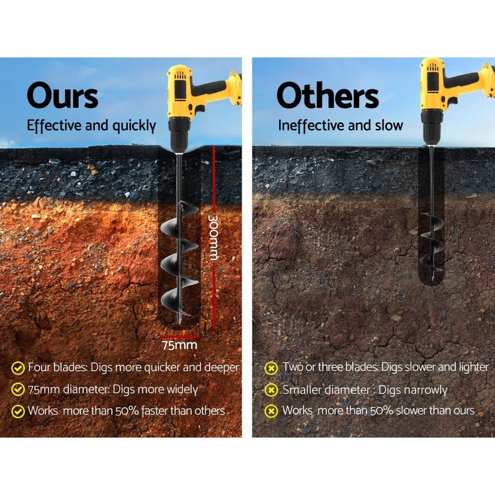 GIANTZ Power Garden Auger Small Earth Planter 75 X 300MM Black