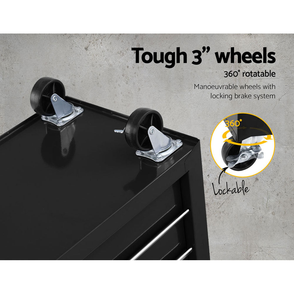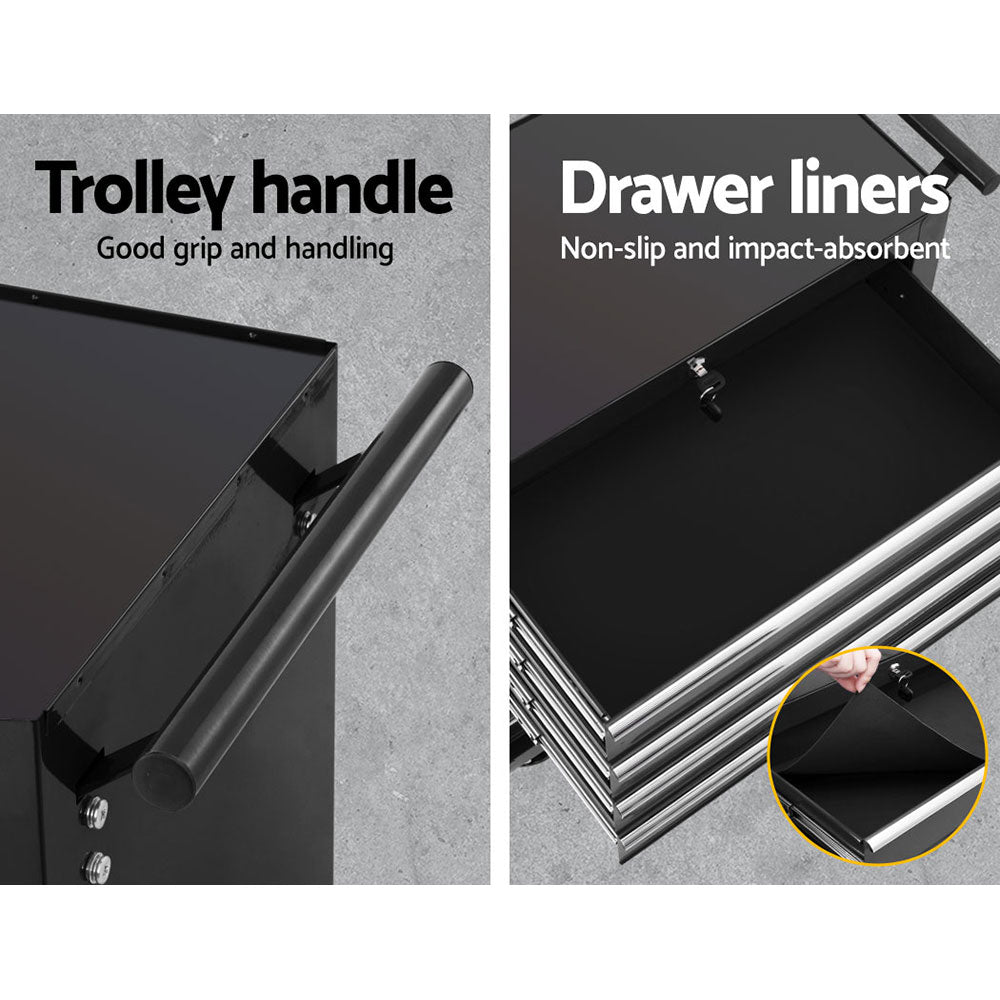 Giantz Tool Box Trolley Chest Cabinet 6 Drawers Cart Garage Toolbox Set Black