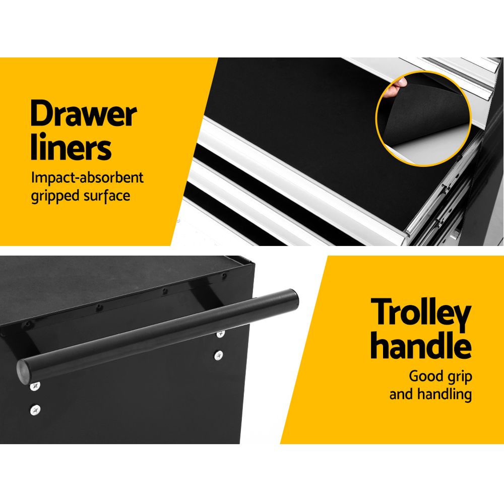 Giantz Tool Chest and Trolley Box Cabinet 7 Drawers Cart Garage Storage Black and Silver
