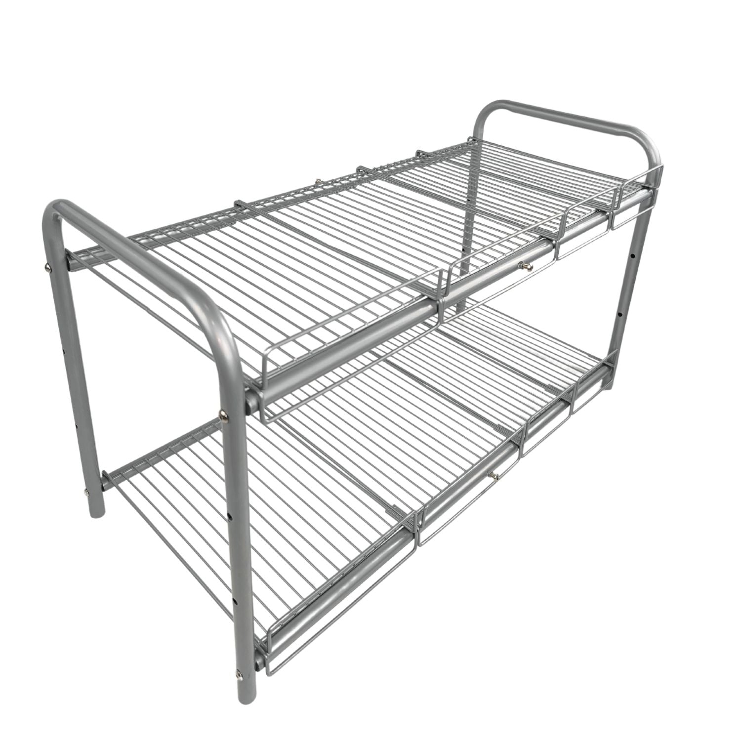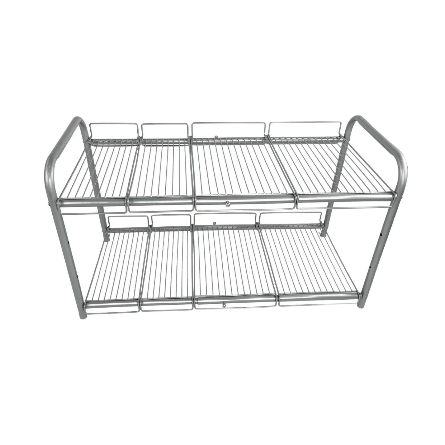 GOMINIMO 2 Tier Under Sink Expandable Shelf Organizer with Removable Steel Panels (Silver) GO-USO-101-CJ