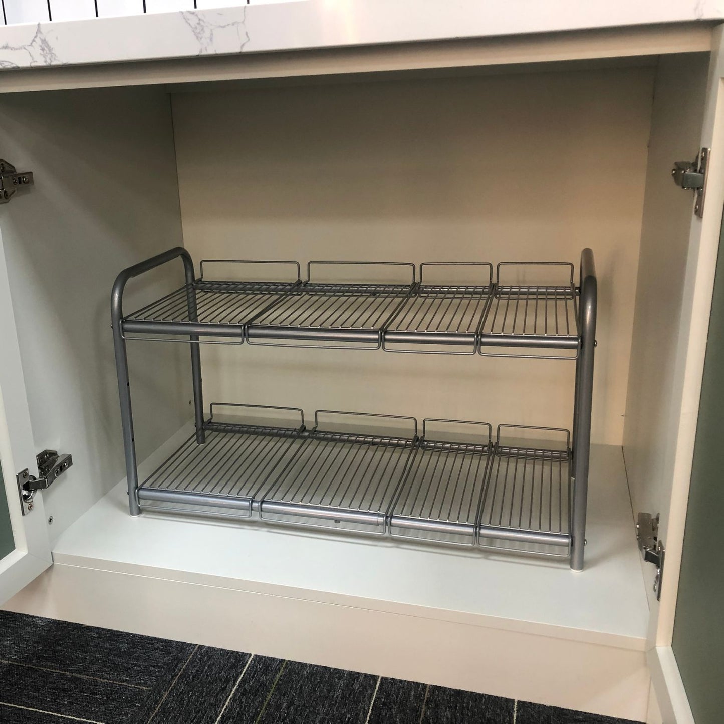 Sturdy steel constructed: This under-sink organizer is perfect for any kitchen. It's made from durable alloy steel and coated with a silver finish, ensuring that it will be long-lasting. It has a single-layer bearing capacity of 10 kg, so you can trust it to hold any items you like.