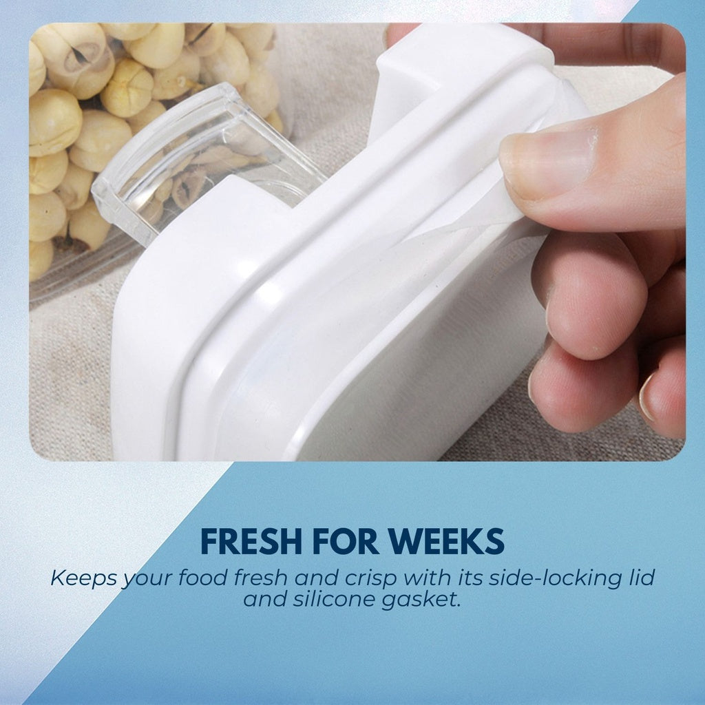 Airtight silicone gasket and side-locking lid seals your food to preserve and prolong its freshness. Feel the crunch of your biscuits and cereals even after weeks!