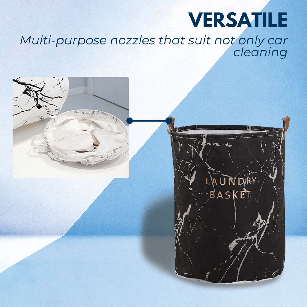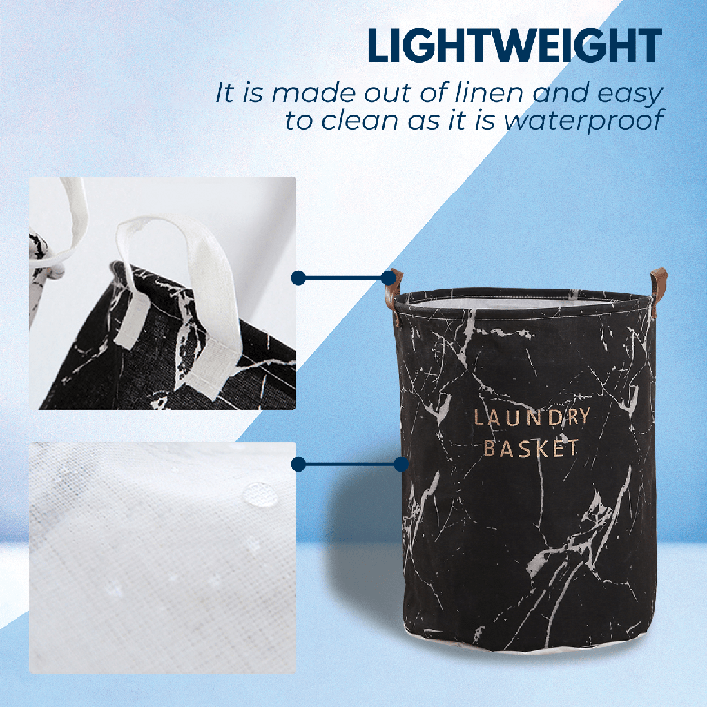 Laundry Basket Round Foldable (Grey Marble)