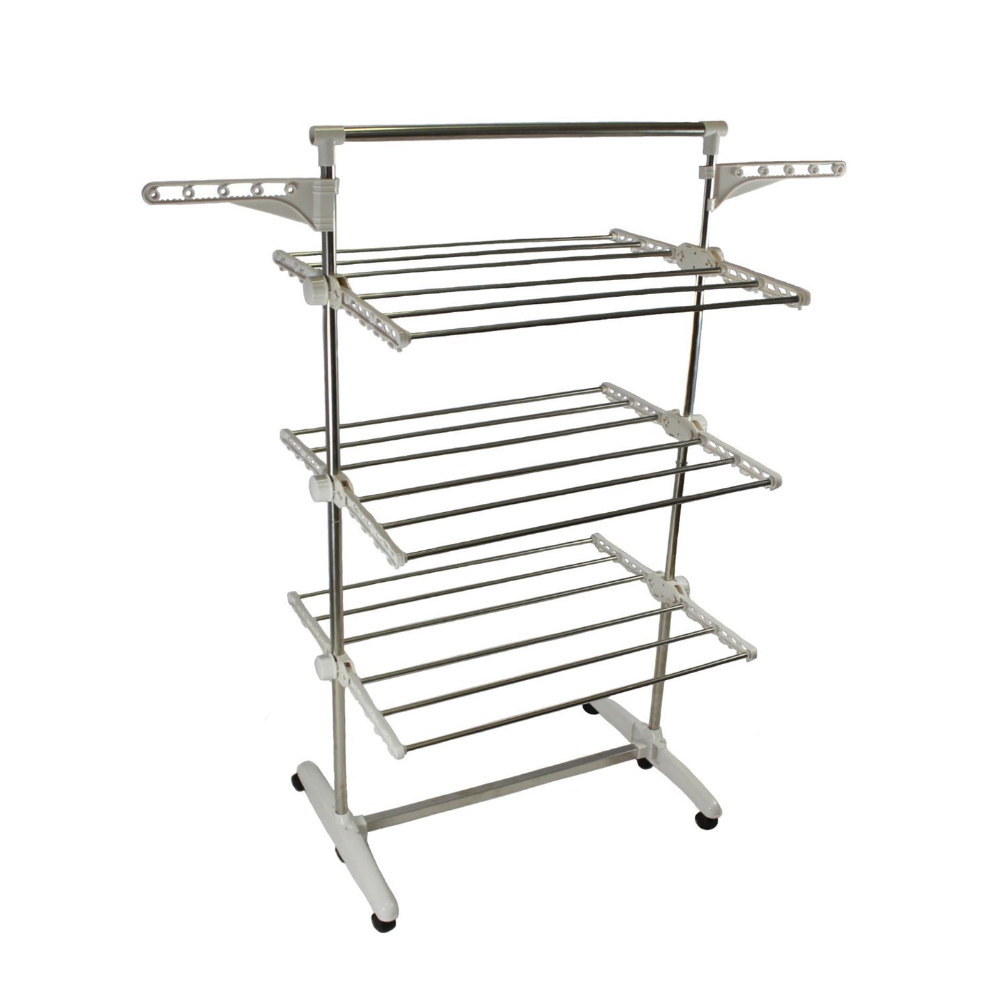Extra stable: An extra stable laundry drying rack is one that is designed to be very sturdy and durable, with the ability to hold a large amount of laundry without collapsing or bending. One of the features that can make a drying rack extra stable is the use of thick stainless steel tubing.