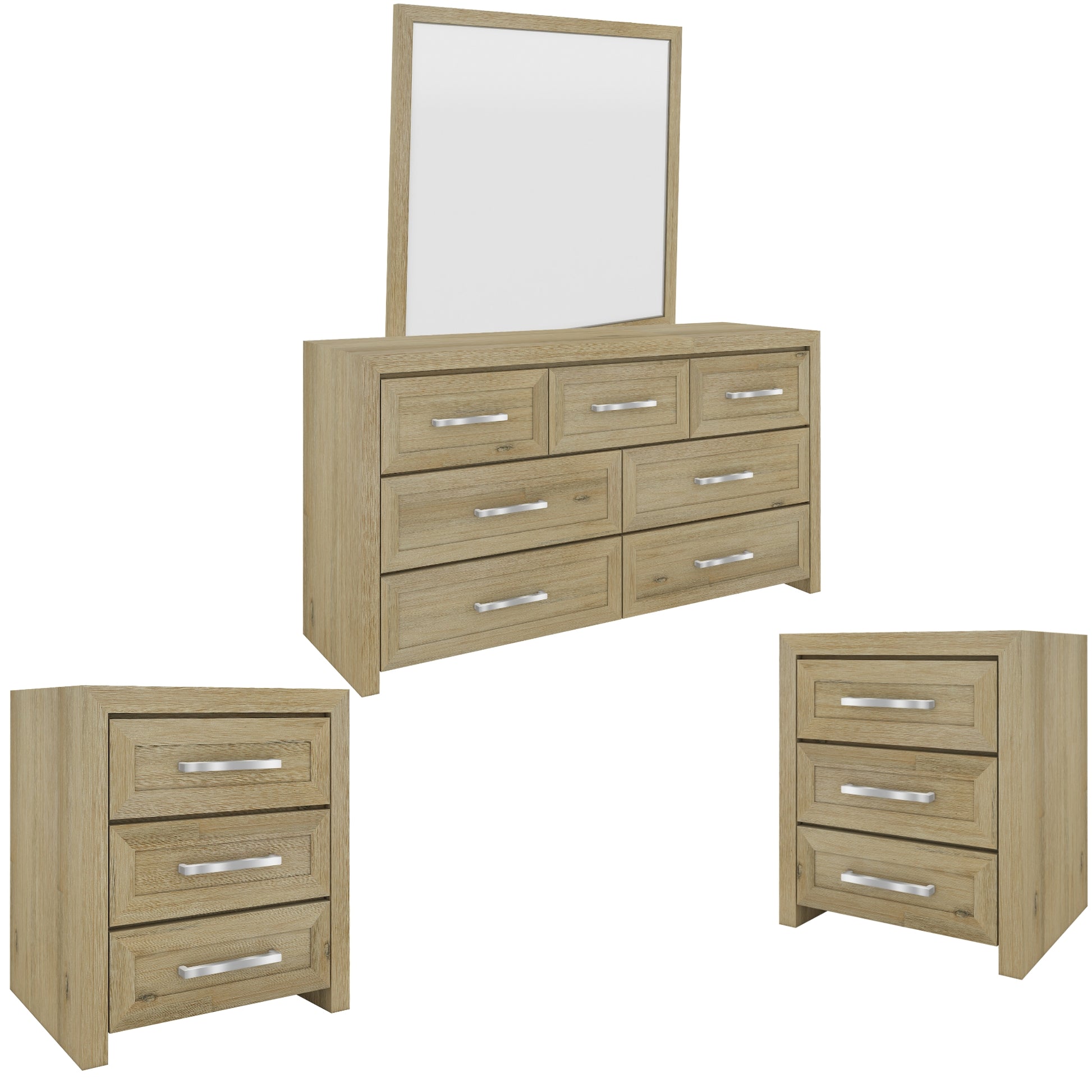 Turn your bedroom into the most sophisticated corner of the house by placing this 2pc set bedside table there with a dresser and mirror set. Designed in a contemporary style, the storage cabinets uplift the charm and functionality of the place. Each bedside table has 3 sizable drawers, and the dresser has 7 sizable drawers-3 over 4 drawers. The annealed glass mirror with its wooden frame makes the wall or any dresser look immensely beautiful. All the drawers have full-metal extension runners and silver-brushed metal handles. The furniture pieces are made of sustainably harvested Solid Acacia wood. The brushed smoke finish goes well with practically any interior decor style. The fully assembled furniture pieces come with a one-year warranty.