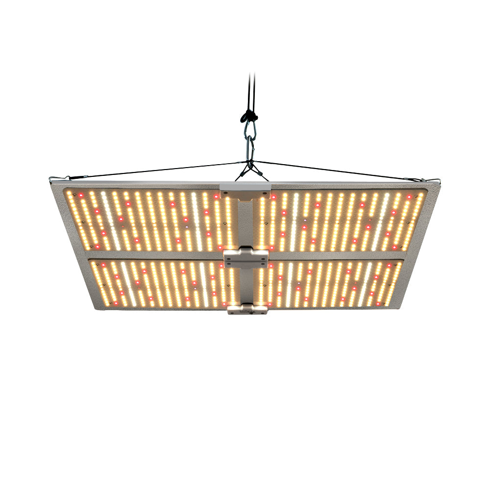 High Energy Efficiency with about 2.6 umol/J, delivers powerful light output and uniform canopy penetration to resulting maximum higher yields. Only consumes 450w, running 50% less power than the HPS or other SMD LEDs or Blurple lamps. Veg footprint is 4 x 4 ft, Flowering footprint is 3 x 3 ft.