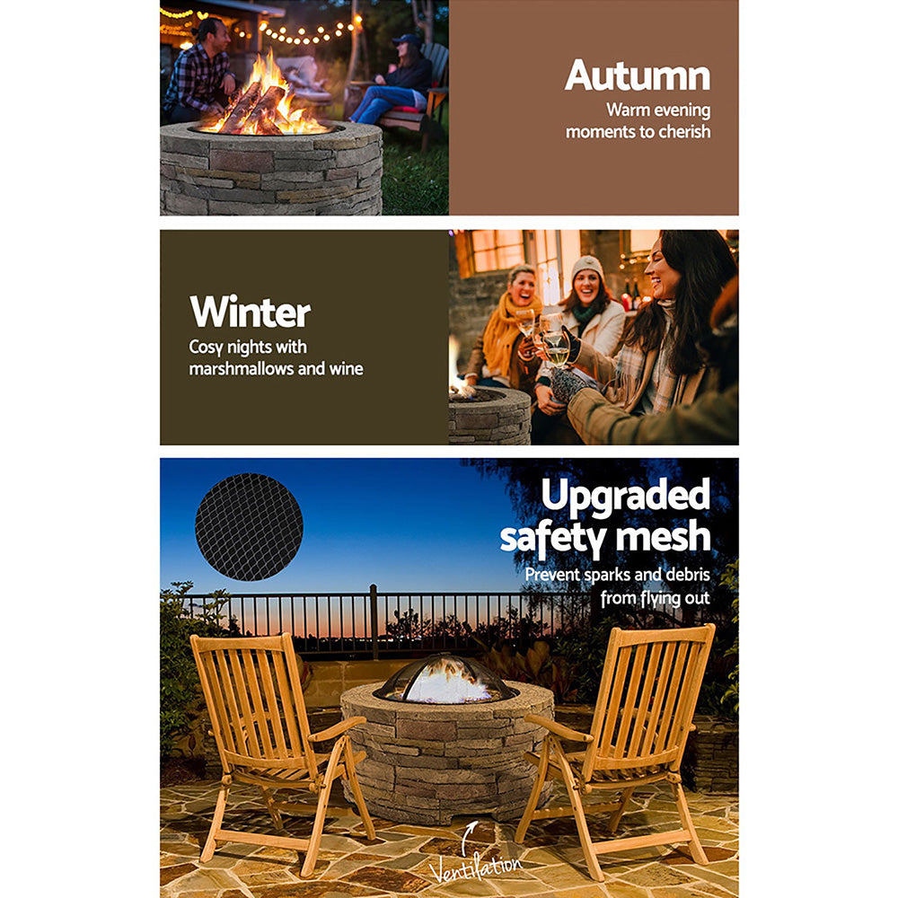 Grillz Fire Pit Outdoor Table Charcoal Fireplace Garden Firepit Heater