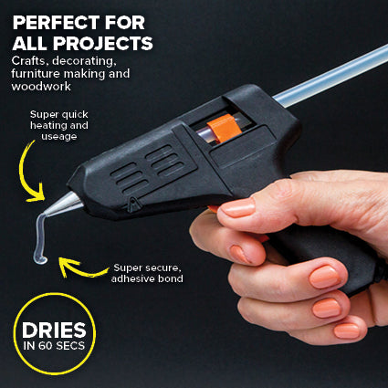Handy Hardware® Multipurpose hot glue sticks that heat up quickly and dry in little as 60 seconds. Suitable for a 40W large glue gun and ideal for materials such as; paper, plastic, wood, fabric, rubber and more.