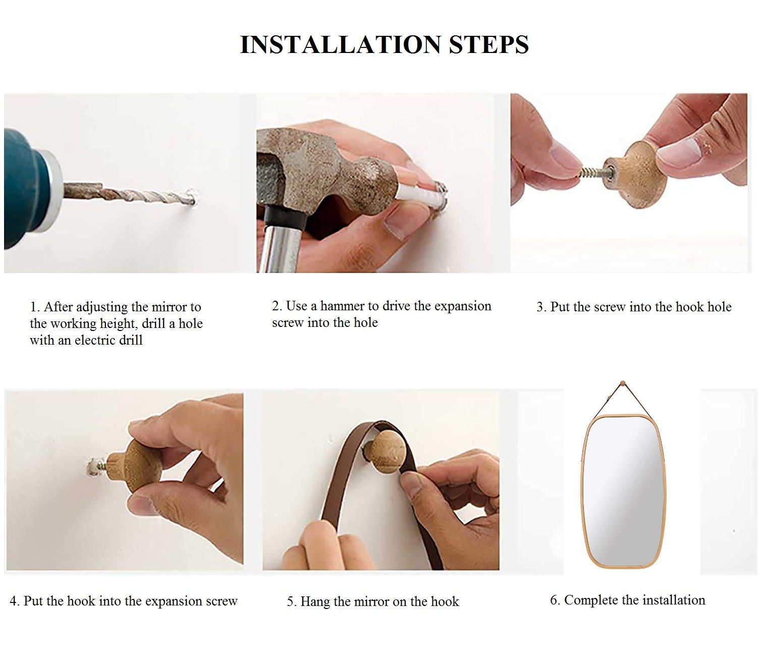 ADJUSTABLE LEATHER STRAP: The artificial leather strap of the circle mirror is adjustable, convenient to adjust the mirror to a suitable level to anyone.