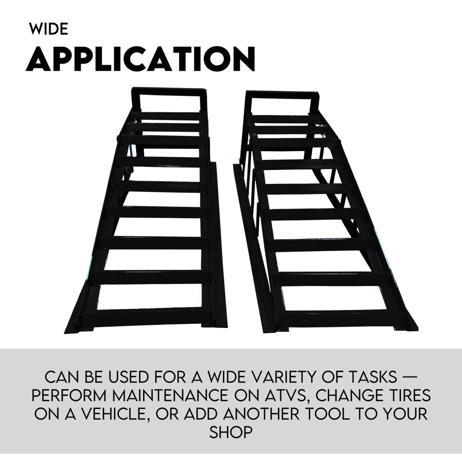 These ramps can be used for a wide variety of tasks — perform maintenance on ATVs, change tires on a vehicle, or add another tool to your shop. Perfect for all under-vehicle maintenance and inspections. Long, lasting and durable construction for a long service life.